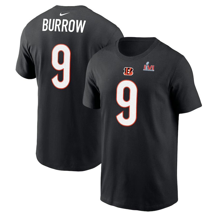 Men's Cincinnati Bengals Joe Burrow Nike Black Super Bowl LVI Bound Name & Number T-Shirt